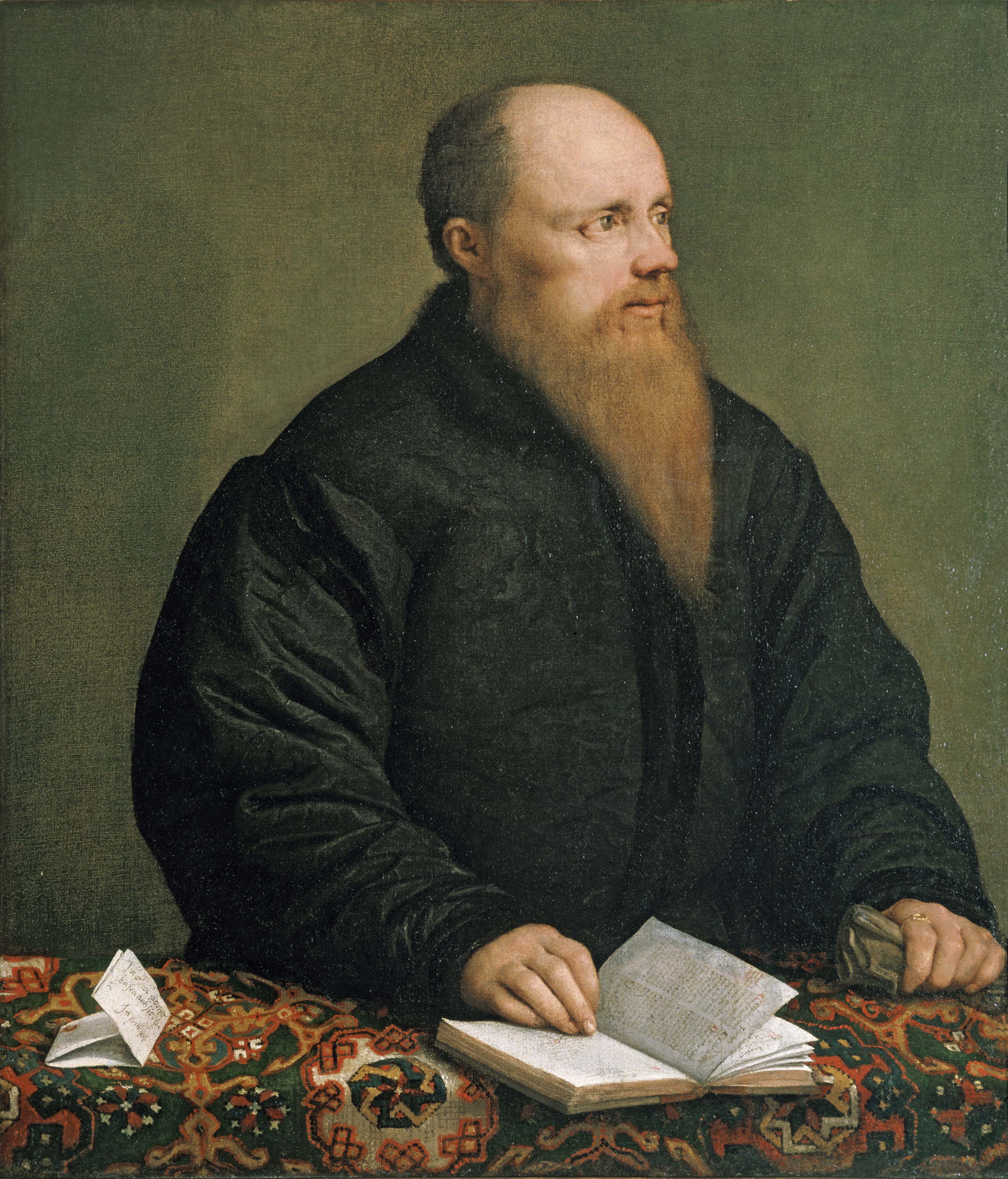 In addition to clothing, the sitter’s long beard is also worn in a manner designed to command esteem and respect. The whiskers above his mouth are trimmed and precise, while his sideburns are bushy, adding bulk to a relatively gaunt face. As it extends downward, the beard widens, then narrows into a well-defined point. In Italian society of this period, the style of beards ran the gamut, from the trimmed stubble of a young suitor to the whitened tangle of an elderly sage.9 This haircut — neatly cropped on top with a generous beard extending to the upper chest, reminiscent of the portrait busts of classical philosophers — was particularly popular in the mid-sixteenth century among Italian humanists and the clerical elite. Moreover, the unfussy style of the sitter’s beard is in keeping with the recommendations of the most influential arbiters of sixteenth-century courtly style and manners. In Il Cortegiano, Baldassare Castiglione’s discourse on etiquette and morality (Venice 1528), the assembled courtiers cautioned against paying too much attention to grooming lest they privilege appearance over inner qualities. To draw too much attention to the beard — or to clothing, boots or teeth, for that matter — was to be “very tasteless.”10 And in the Galateo (Venice 1558), the Florentine poet and writer Giovanni della Casa warned explicitly against being too adventurous with facial hair, lest one contravene local custom.11 Indeed, there is a striking resemblance between the beards worn by Bassano’s sitter and Jacopo da Pontormo’s portrait of a man identified for many years as della Casa himself (fig. 4).12