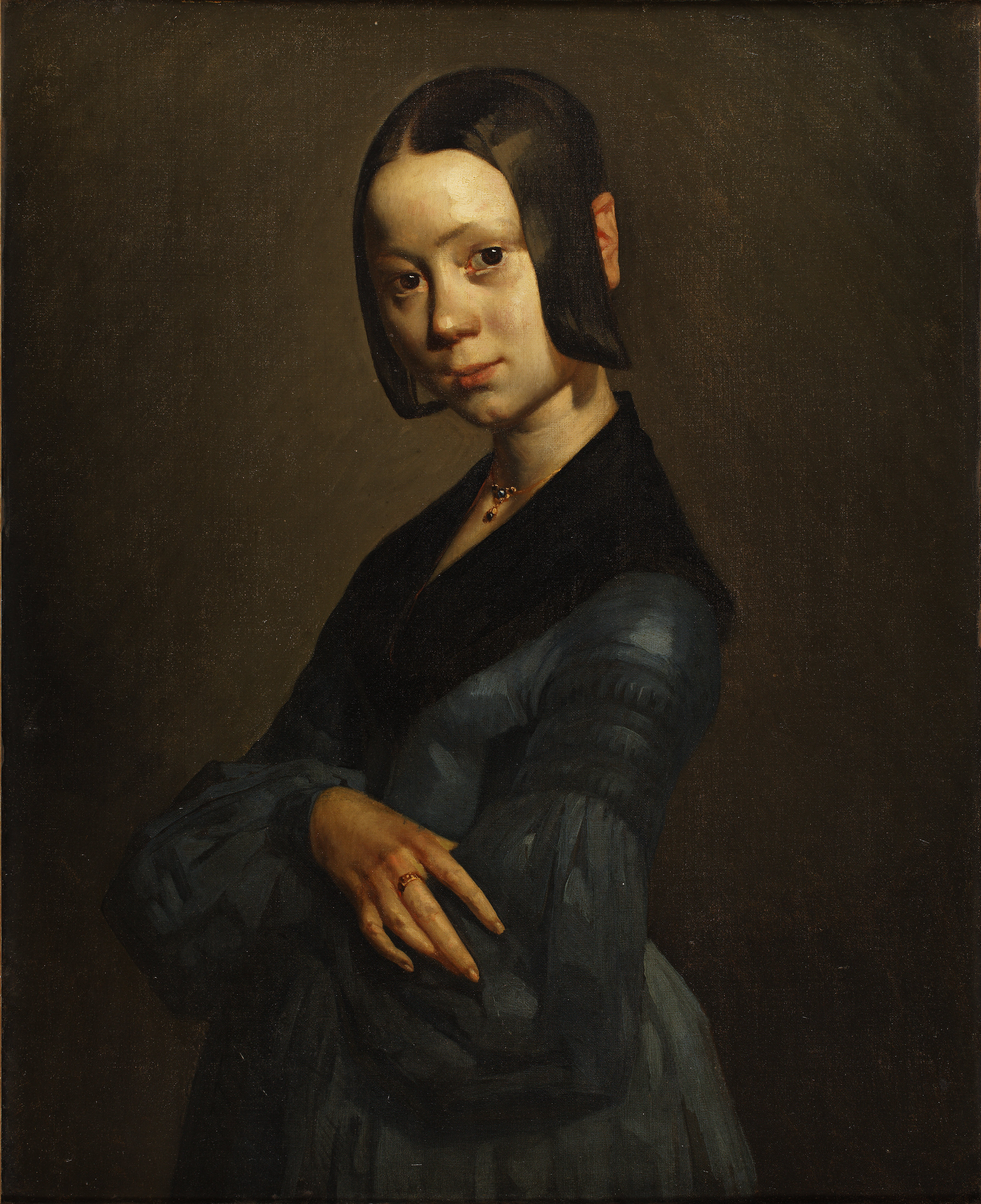 Whatever the precise date of its execution in 1841, the Portrait of Louise-Antoinette Feuardent ranks among the strongest of Millet’s early Cherbourg period. It exemplifies the bold simplicity and cultivated lack of pretension that characterizes much post-revolutionary French portraiture, and attests to the fact that the influence of Jacques-Louis David (1748–1825) and his school – of which Langlois, as a student of Gros, was a third-generation representative – was still strong in the middle of the nineteenth century. At the same time, the portrait reflects contemporary fashion, tinged as it is with romantic melancholy in the sitter’s wan, pallid mien and slightly mournful expression, which gains in resonance with the knowledge of Mme Feuardent’s recent life experiences. And while the portrait was calculated in its modesty and reserve to appeal to the conservative tastes and gender norms of the provincial bourgeoisie, it also brings to bear the painterly lessons that Millet had learned in Paris and that were to distinguish his brand of portraiture from the more routine and high-volume productions of the miniaturists and daguerreotypists who were also seeking business in Cherbourg in the late 1830s and early 1840s.