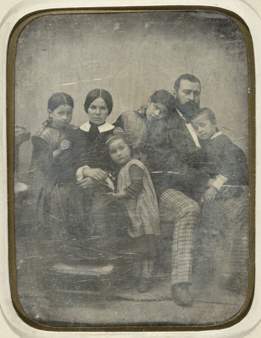 1844 would be the last year that Millet painted portraits in Cherbourg. At some point after Pauline Ono’s death he started a relationship with Catherine Lemaire (1827–1894), a domestic servant 13 years his junior, and possibly to keep the knowledge of this liaison from his family (and avoid difficult encounters with the Ono family), Millet moved to Le Havre in 1845, plied his trade as a portraitist there for several months, and then moved with Lemaire to Paris, where they soon started a family.57 Millet would keep his distance from Normandy for several years, returning only upon his mother’s death in the spring of 1853. Later that year he and Lemaire were finally married, and it was only then that Millet entertained a longer trip back to his native region with his new family. He, Catherine, and their four children spent the whole summer of 1854 in Normandy,58 an occasion commemorated by a family photograph taken by none other than Feuardent himself, who had become something of an amateur photographer in the intervening years (fig. 7).