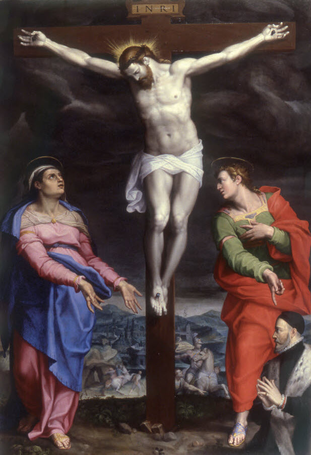 One of only two paintings by Marco Pino in the United States, Christ on the Cross with the Virgin, Saint John the Evangelist, and Saint Catherine of Siena in Adoration offers a rare opportunity to appreciate the work of this refined and original protagonist of the Italian Cinquecento.