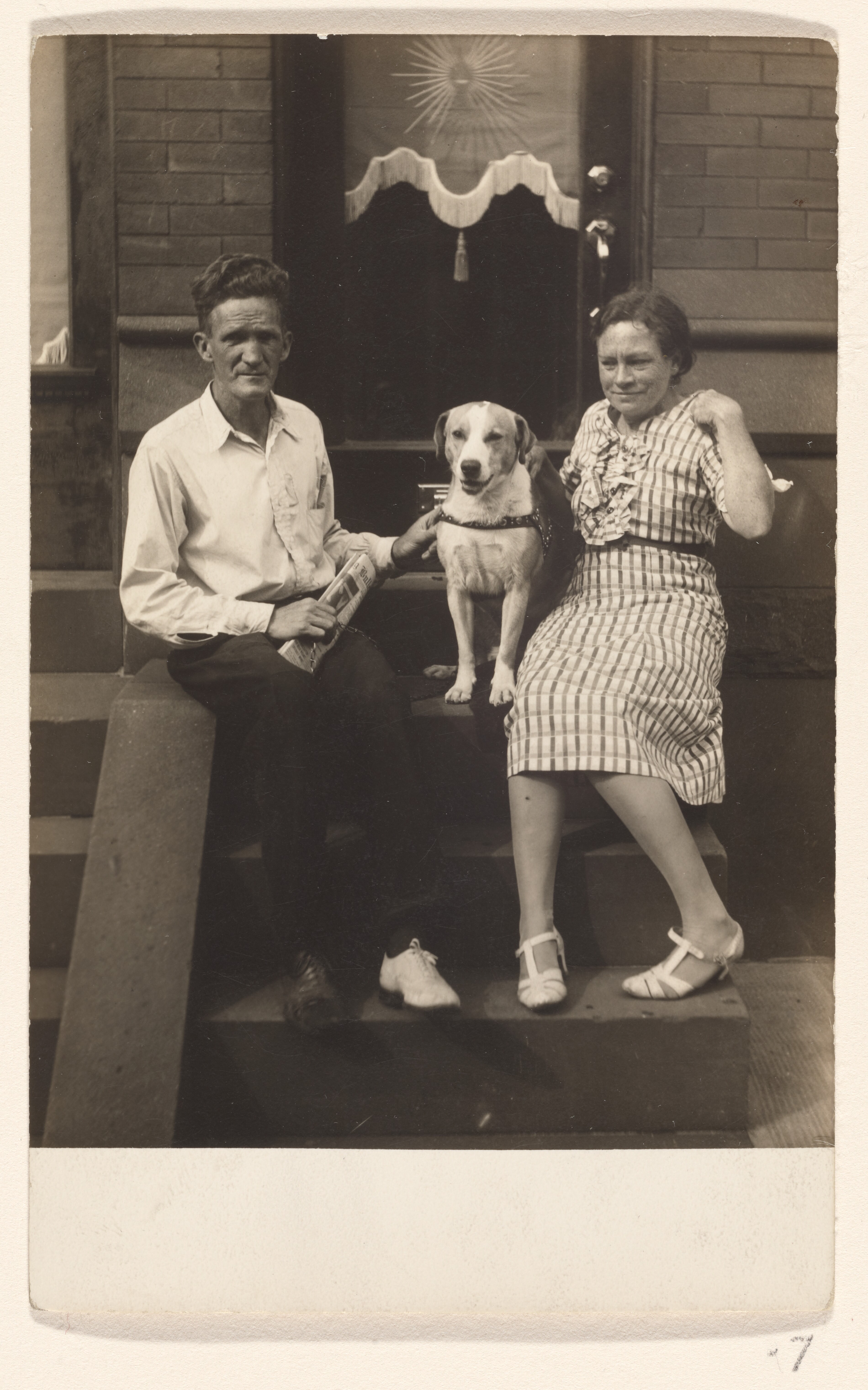 Keith’s portraits are strikingly direct and intimate—qualities that likely resulted from his working methods as well as the peculiarities of his inexpensive, fixed-focus camera. In contrast to studio photographers, Keith chose to portray his subjects on their front stoops or standing in front of their homes. Likely due in part to their comfort with their surroundings, many of the people in his photographs appear at ease, striking playful and animated poses (see 84.XP.707.36 and 84.XP.447.3). Families lounge on their front steps and pose with their dogs (84.XP.447.9 ; 84.XP.447.7). As a resident of West Kensington, it is possible that Keith knew many of the people he photographed personally. Alongside his day job at the Eastern Fish Company (and, as of 1920, at the Teamster labor union), Keith also traveled to South Philadelphia to photograph residents outside their homes and workplaces. In 1922, following his mother’s death, Keith left Kensington and began renting rooms in other areas of the city, living “among the people he photographed.”1 His movements within the city are instructive: in many ways, his portraits hover between affectionate views from within these communities and an almost ethnographic lens on working-class life (84.XP.447.6).